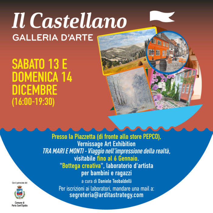 Sabato 13 e Domenica 14 dicembre inaugura la mostra “Tra mari e monti – Viaggio nell’impressione della realtà ”, un percorso che unisce natura e memoria, dove l’artista esprime immagini reali tratte da visioni vissute. Un viaggio sensoriale che racconta la bellezza del paesaggio e delle emozioni umane, visitabile fino al 6 gennaio. In programma anche “Bottega d’artista”, laboratorio creativo aperto a tutti.