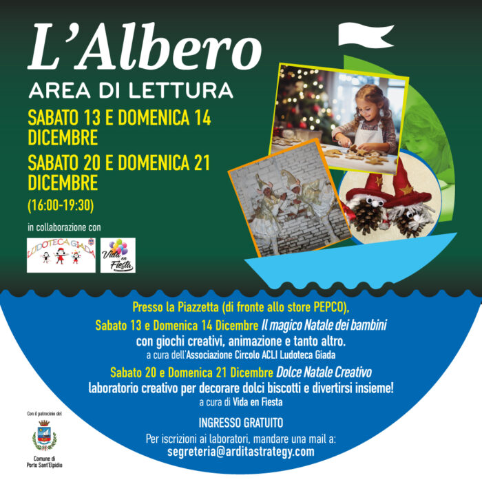 Sabato 13 e Domenica 14 dicembre giochi creativi, animazione e tante attivitĂ per vivere la magia del Natale insieme! In occasione dell’evento sarĂ allestita anche la mostra di disegni natalizi dei bambini a tema “Il magico Natale dei bambini”, dove i piccoli artisti dell’associazione esporranno le loro creazioni. A cura dell’Associazione Circolo ACLI Ludoteca Giada. Iscrizioni: segreteria@arditastrategy.com